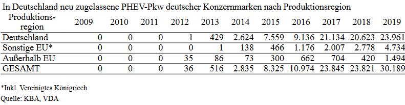 Neuzulassungen Plug-In-Hybride – Tabelle © KBA, VDA
