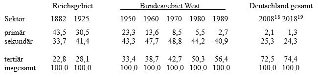 Wie sich die Wirtschaft heute unter Berücksichtigung dieser drei Sektoren gliedert, zeigen die folgenden Zahlenreihen für die Bundesrepublik Deutschland17: