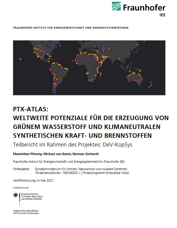 Doch wo könnten die CO2-neutralen Brenn- und Kraftstoffe zu welchen Kosten in welcher Menge auf nachhaltige Weise produziert werden – und welche Kosten verursacht deren Export? Das stellt jetzt der weltweit erste PtX-Atlas des Fraunhofer IEE im Detail dar. In ihrer Untersuchung haben sich die Experten auf die Standorte außerhalb des europäischen Wirtschaftsraumes konzentriert. Der PtX-Atlas ist im Rahmen des vom Bundesumweltministerium geförderten Projekts DeVKopSys entstanden. Ziel des Projekts ist es, mit den klimapolitischen Zielen der Bundesregierung verträgliche Entwicklungspfade im Verkehrssektor in Rückkopplung mit anderen Sektoren des Energiesystems wissenschaftlich zu untersuchen.