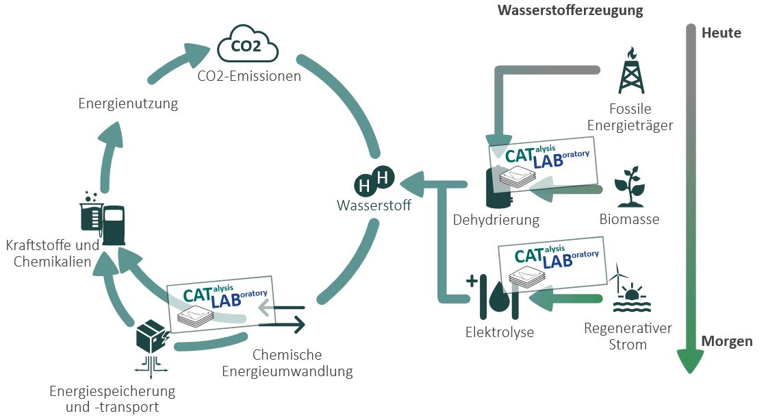 Hierbei besteht die zentrale Aufgabe neuartige Katalysatoren zu entwickeln um eine effiziente Umwandlung chemischer Energie in elektrische und umgekehrt zu gewährleisten – der Kern von CatLab.Forschungsaufgaben für die Nutzung von erneuerbarem Strom als Primärenergiequelle