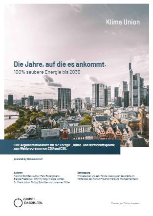 Die innerhalb von CDU und CSU gegründete Gruppe hat am 28.06.2021 eine Argumentationshilfe unter dem Titel „Die Jahre, auf die es ankommt“ vorgestellt, die auf Energie-Dialogen mit energiewirtschaftlichen Experten beruhen, explizit genannt werden Friedrich Merz und Thomas Heilmann. Was darin beschrieben wird, klingt wie die eierlegende Wollmilchsau: „Mit einer Entfesselung des Energiemarktes hat Deutschland das Potenzial, erstes klimaneutrales Industrieland weltweit mit 100 Prozent erneuerbarer Energieversorgung zu werden. Gleichzeitig wird das Leben für die Menschen in Deutschland billiger – beim Autofahren, beim Heizen und beim Verbrauch von sauberem Strom.“