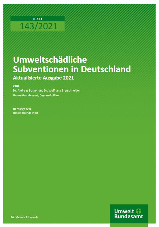 Der Bericht gibt einen Überblick über die umweltschädlichen Subventionen in Deutschland und macht Vorschläge zu ihrer Reform bzw. ihrem Abbau. Es werden Subventionen in den Blick genommen, die negativ auf die Umweltgüter ?Klima?, Luft, Boden, Wasser, Artenvielfalt und Landschaft sowie auf Gesundheit und Rohstoffverbrauch wirken. Der Bericht analysiert Subventionen und ihre Umweltwirkungen in den Bereichen Energiebereitstellung und -nutzung, Verkehr, Bau- und Wohnungswesen sowie im Bereich Land- und Forstwirtschaft, Fischerei. Er konzentriert dabei sich auf die wichtigsten Subventionen des Bundes und betrachtet Förderprogramme auf Landes- und kommunaler Ebene nur am Rand.