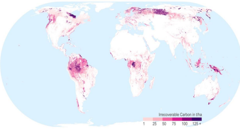 - Originalpublikation: Monica L. Noon, Allie Goldstein, Juan Carlos Ledezma, Patrick R. Roehrdanz, Susan C. Cook-Patton, Seth A. Spawn-Lee, Timothy Maxwell Wright, Mariano Gonzalez-Roglich, David G. Hole, Johan Rockström, Will R. Turner (2021): Mapping the irrecoverable carbon in Earth’s ecosystems. Nature Sustainability. [DOI: 10.1038/s41893-021-00803-6]