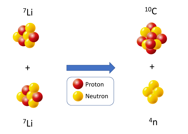 Schematische Darstellung der Kernreaktion im Tandem-Van-de-Graaff-Beschleuniger des Maier-Leibnitz-Laboratoriums – Bild © Mahmoud Mahgoub/TUM, BB-CY 4.0