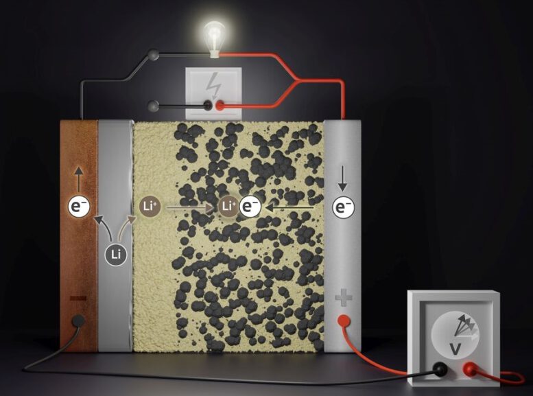 Schematischer Aufbau einer Festkörperbatterie – Grafik © (m. frdl. Genehmigung) JLU, Elisa Monte