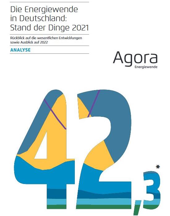 *Anteil Erneuerbarer Energien am Stromverbrauch 2021 – „Die Energiewende in Deutschland – Stand der Dinge 2021“ – Agora – Untersuchung 1-2022, Titel © agora-energiewende.de