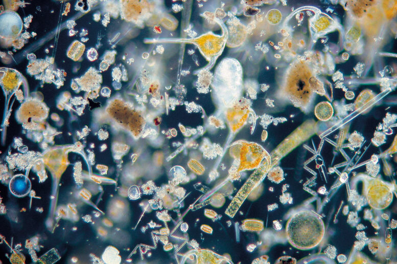 Phytoplankton benötigt zum Wachsen Licht und Nährstoffe. Beides gemeinsam in ausreichender Menge ist für die mikroskopischen Algen im Ozean aber selten zu finden. In den oberen Wasserschichten fehlen ihnen in der Regel die Nährstoffe, weiter unten das Licht. Eine Untersuchung des Helmholtz-Zentrums Hereon zusammen mit dem GEOMAR Helmholtz-Zentrum für Ozeanforschung Kiel sagte kürzlich: Phytoplankton kann zwischen tieferen Schichten und der Wasseroberfläche hin- und herwandern. Sollte sich das bestätigen, hätte es enorme Konsequenzen für die Kalkulationen der natürlichen Kohlenstoffpumpe und damit auch für aktuelle Berechnungen des Kohlenstoffbudgets. Die Ergebnisse der Studie wurden am 02.08.2022 open access in Nature Climate Change veröffentlicht. (Bild: Phytoplankton unter dem Mikroskop – © Annegret Stuhr, GEOMAR)