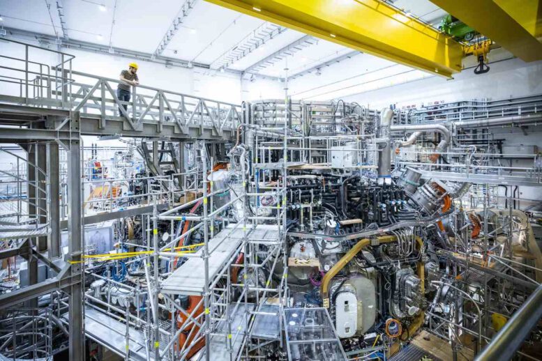 Verdoppelte Heizleistung, 40 neue Diagnostiken und 6,8 Kilometer Kühlrohre: Der Greifswalder Stellarator hat seine volle Ausbaustufe erreicht und beginnt laut einer Medienmitteilung vom 14.09.2022 in diesem Herbst wieder mit wissenschaftlichen Experimenten. In wenigen Jahren soll ein Plasmabetrieb bis 30 Minuten möglich sein. Drei Jahre lang hatten bei Wendelstein 7-X vor allem Ingenieure und Techniker das Sagen. Es ging darum, das Kernfusionsexperiment des Max-Planck-Instituts für Plasmaphysik (IPP) am Standort Greifswald auf seine volle Ausbaustufe zu heben.