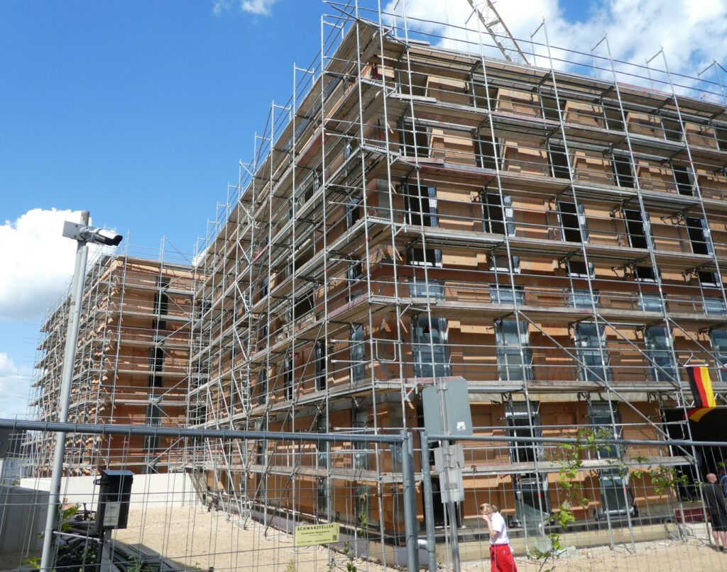 Eingerüsteter Neubau CEC Mülheim – Foto © Gerhard Hofmann, Agentur Zukunft, für Solarify