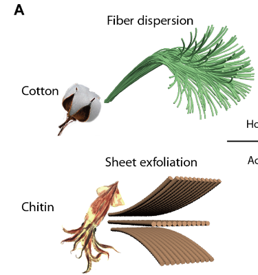 Die regenerativen Grundzutaten: Baumwolle und chitinhaltige Knochen. Quelle: Wu et. al (2024). in: Science Advances, 10, S. 12 Fig. 1