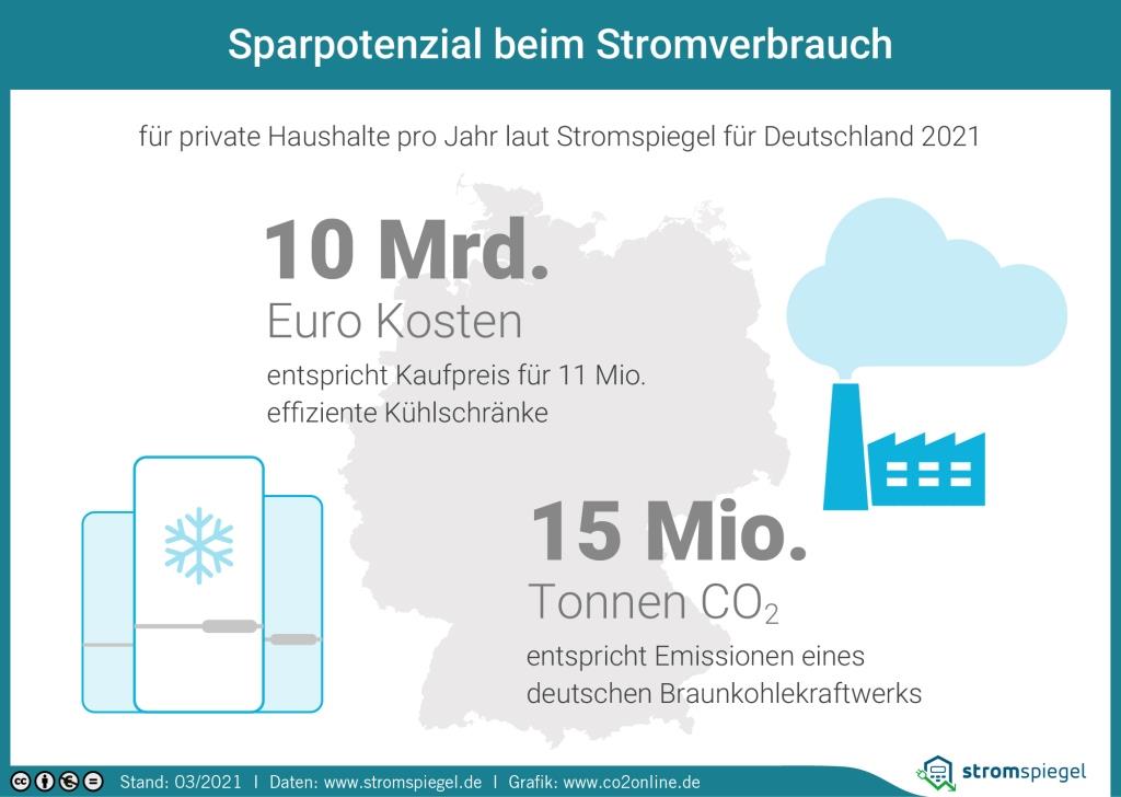 Stromspiegel 2021: Milliarden Stromkosten und Millionen Tonnen CO2 einsparen