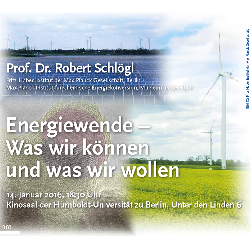Auf Einladung des Hermann von Helmholtz-Zentrums für Kulturtechnik (HZK) und der Stiftung Mercator sprach Prof. Robert Schlögl (FHI Berlin und MPI CEC, Mülheim a.d. Ruhr) am 14.01.2016 im Kinosaal der Humboldt-Universität zu Berlin über das Thema: „Energiewende – Was wir können und was wir wollen“. weiterlesen…