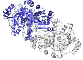 Ein bakterielles Enzym kann mit Hilfe eines molekularen Klebstoffs und einer rechtzeitigen Korrektur Kohlendioxid 20mal schneller in Kohlenstoffverbindungen umwandeln als pflanzliche Enzyme bei der Photosynthese. Die Ergebnisse könnten den Fortschritt bei der Umwandlung von Kohlendioxid in eine Vielzahl von Produkten beschleunigen, schreibt Glennda Chui am 29.04.2022 auf der Webseite des Stanford Linear Accelerator Center (SLAC) am National Accelerator Laboratory. (Bild: Zwei gepaarte Moleküle (blau und weiß) innerhalb des ECR-Enzyms, das Kohlenstoff in Bodenmikroben bindet – Animation © H. DeMirci et al., ACS Central Science, 2022open access) weiterlesen…