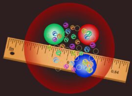 Vor einigen Jahren zeigte ein neuartiges Messverfahren, dass Protonen wohl kleiner sind als seit den 1990er Jahren angenommen. Die Diskrepanz überraschte die Fachwelt; manche Forschende glaubten sogar, das Standardmodell der Teilchenphysik müsse geändert werden. Physiker der Universität Bonn und der TU Darmstadt haben nun eine Methode entwickelt, mit der sie die Ergebnisse älterer und neuerer Experimente deutlich umfassender als bislang analysieren können. Damit ergibt sich auch aus den älteren Daten ein geringerer Protonenradius. Es gibt also wahrscheinlich keinen Unterschied zwischen den Werten – egal, auf welchem Messverfahren sie basieren. Die Studie ist in den Physical Review Letters erschienen. (Grafik: Das Proton (rot) – hat einen Radius von 0,84 Femtometern (fm). In der Abbildung sind auch die drei Quarks dargestellt, aus denen sich das Proton zusammensetzt, sowie die Gluonen, die sie zusammenhalten – © Dr. Yong-Hui Lin/Uni Bonn) weiterlesen…